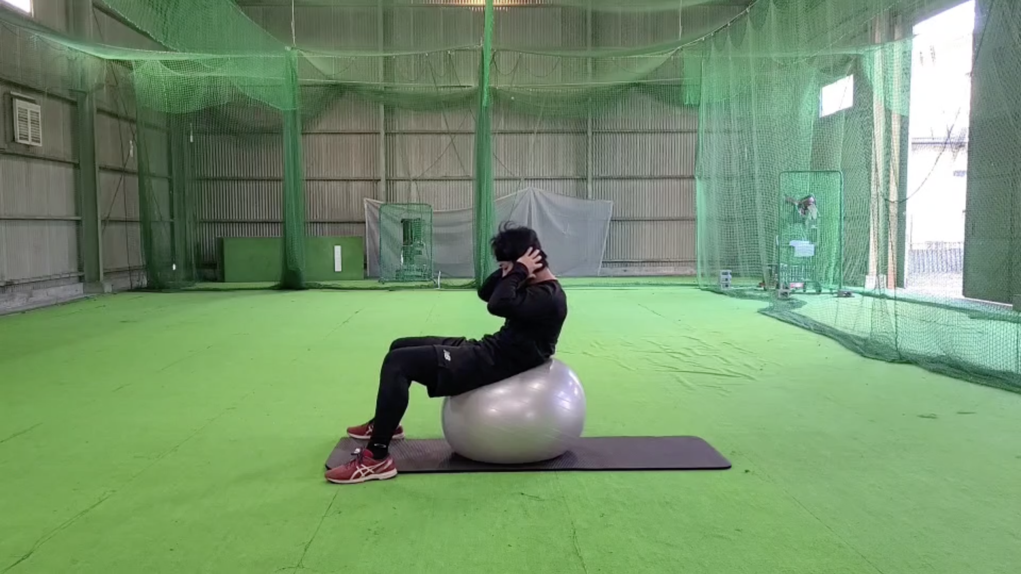 - バランスボールに座る